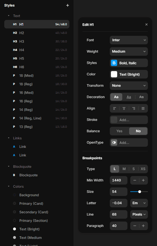 You can easily customize text styles and color schemes in the Assets Panel on the left. Adjust fonts by navigating to the typography page and choosing a style that aligns with your brand.