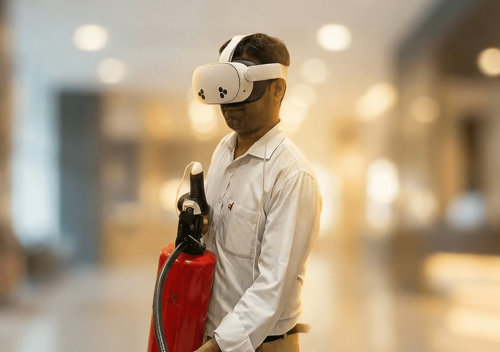 Train with a real extinguisher in VR